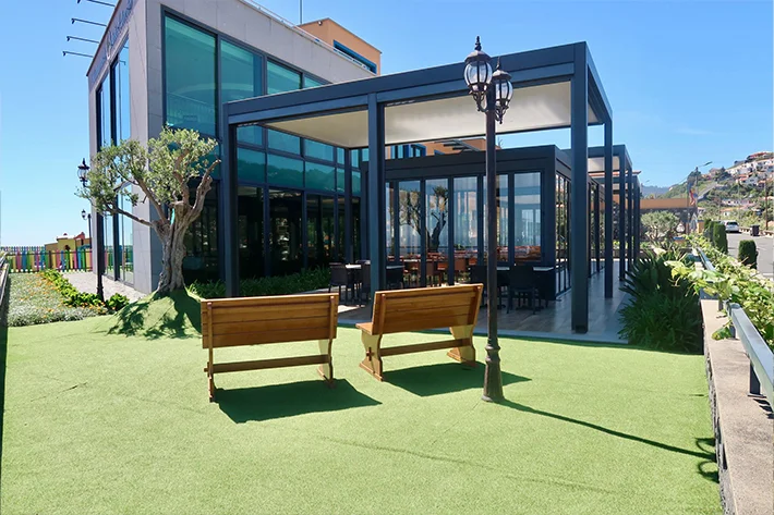 Usufrua de um espaço ao ar livre, com a nossa esplanada coberta e uma vista de cortar a respiração.